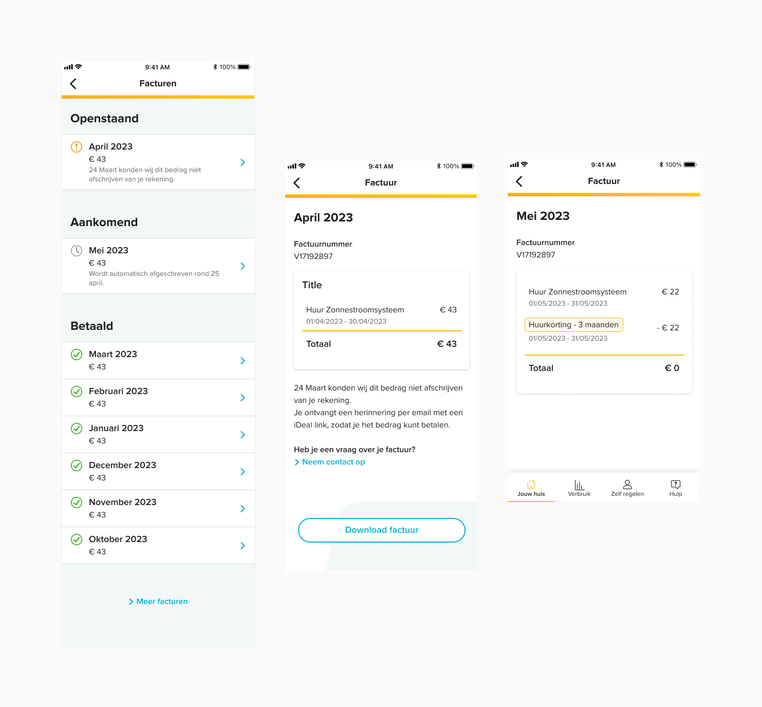 Bij facturen was het vooral belangrijk om cases te voorkomen over de verschillende rekeningen die de klant net na installatie krijgt, en de verwerking van kortingen.
